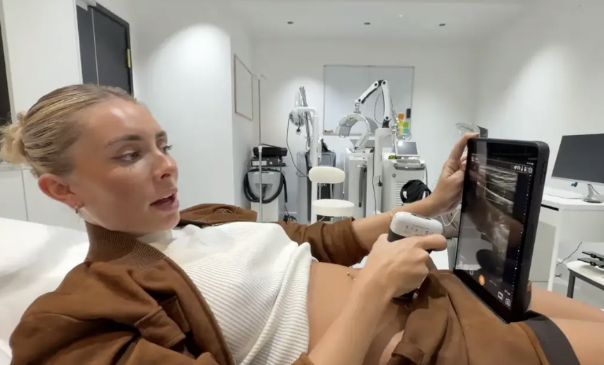 Later in the same video, the adult star can be seen traveling to London for an ultrasound, which she says confirms the pregnancy following what she described as a “breeding mission” involving hundreds of men.