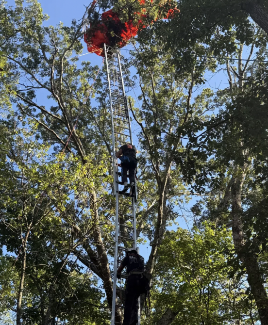 Photos of the stranded student were uploaded to social media by the Nashville Fire Department on X. They depict the rescue operation, which saw firefighters use ladders to reach the summit of the trees.